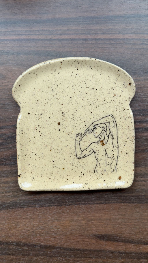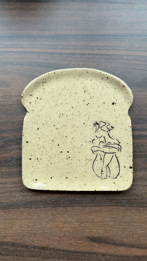 Meet The Toasts – Silhouette: a set of two toast-shaped plates featuring minimalist line drawings of a male body and a female body, illustrated in clean, stylized lines.